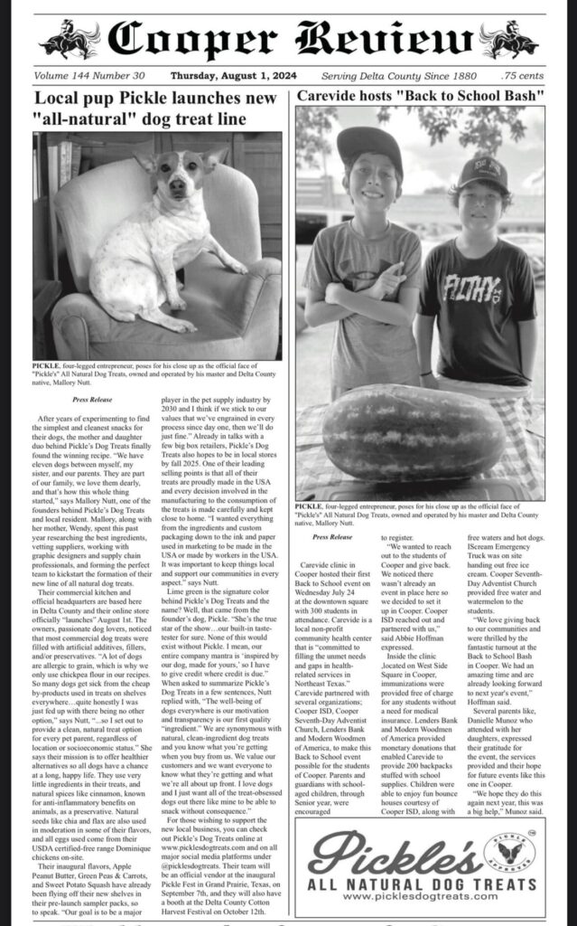 COOPER REVIEW ANNOUNCES THE LAUNCH OF PICKLE'S DOG TREATS (AUG. 2024)